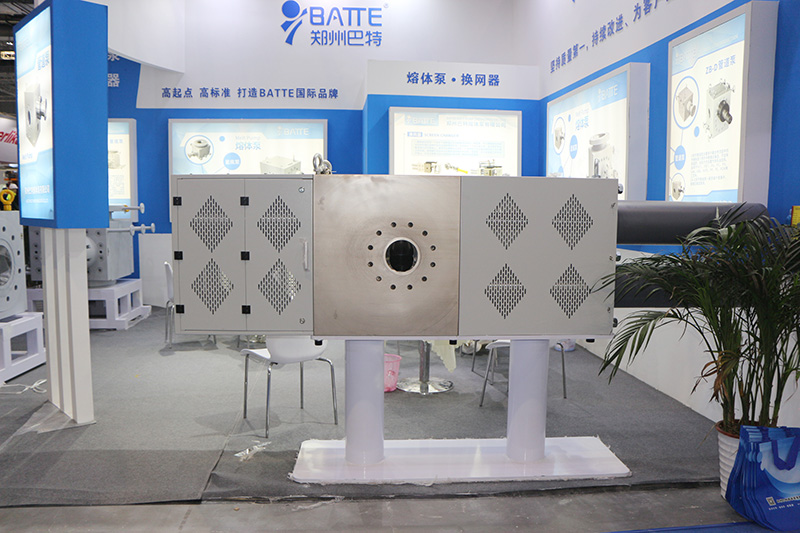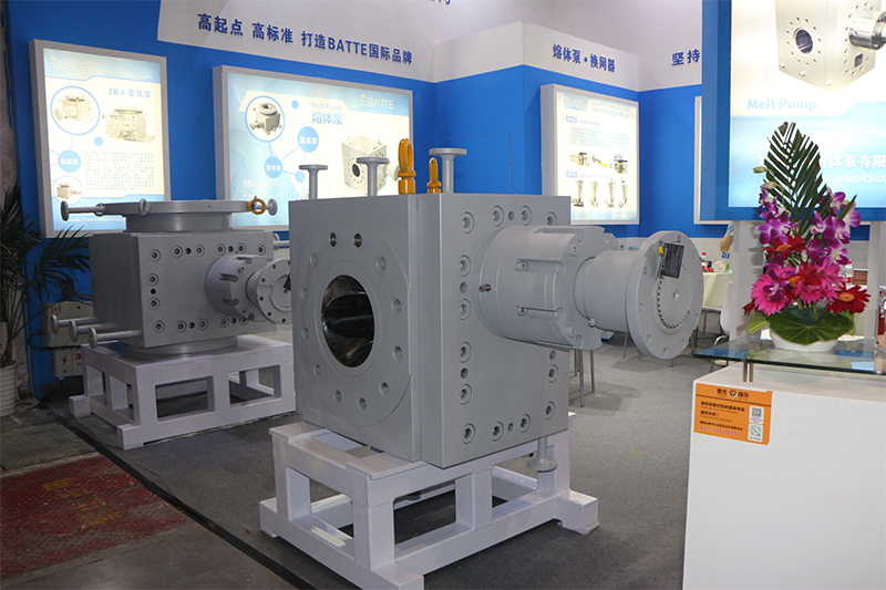 鄭州巴特此次主要展出的是大規(guī)格聚合物熔體出料泵,排量為12000CC,它適用于高真空條件下,高溫高粘度物料的聚合反應(yīng)高壓出料。還有D系列的管道增壓泵,適用于高輸出壓力的高溫高粘度聚合物熔體輸送、增壓,如樹脂、化纖等行業(yè),般安裝于熔體管道中,用作增壓泵。